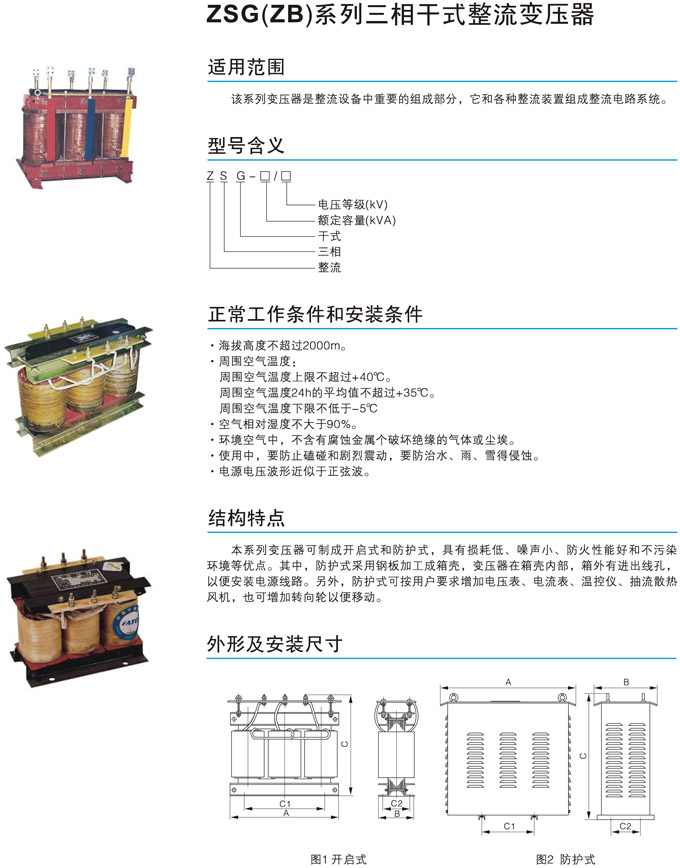 ZSG(ZB)系列三相干式整流變壓器